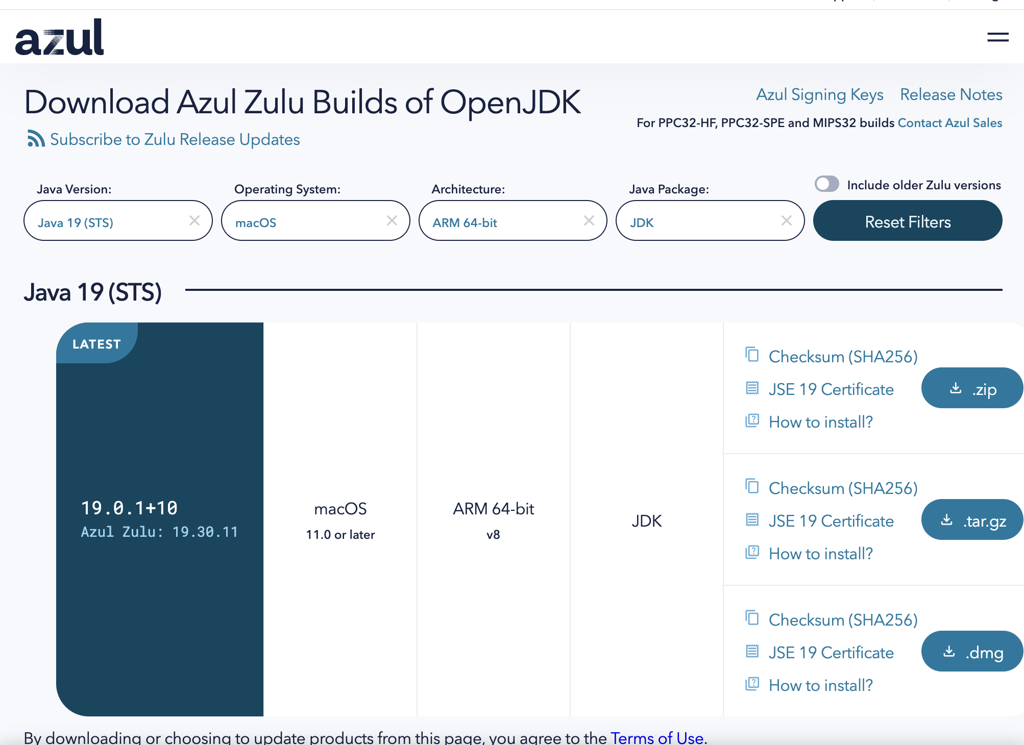 그래서 m1칩용을 제공하는 azul사의 azul openJDK를 설치했다.