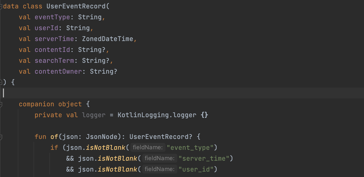 UserEventRecord.of()를 통해 UserEventRecord 기반의 모델로 만들어준다