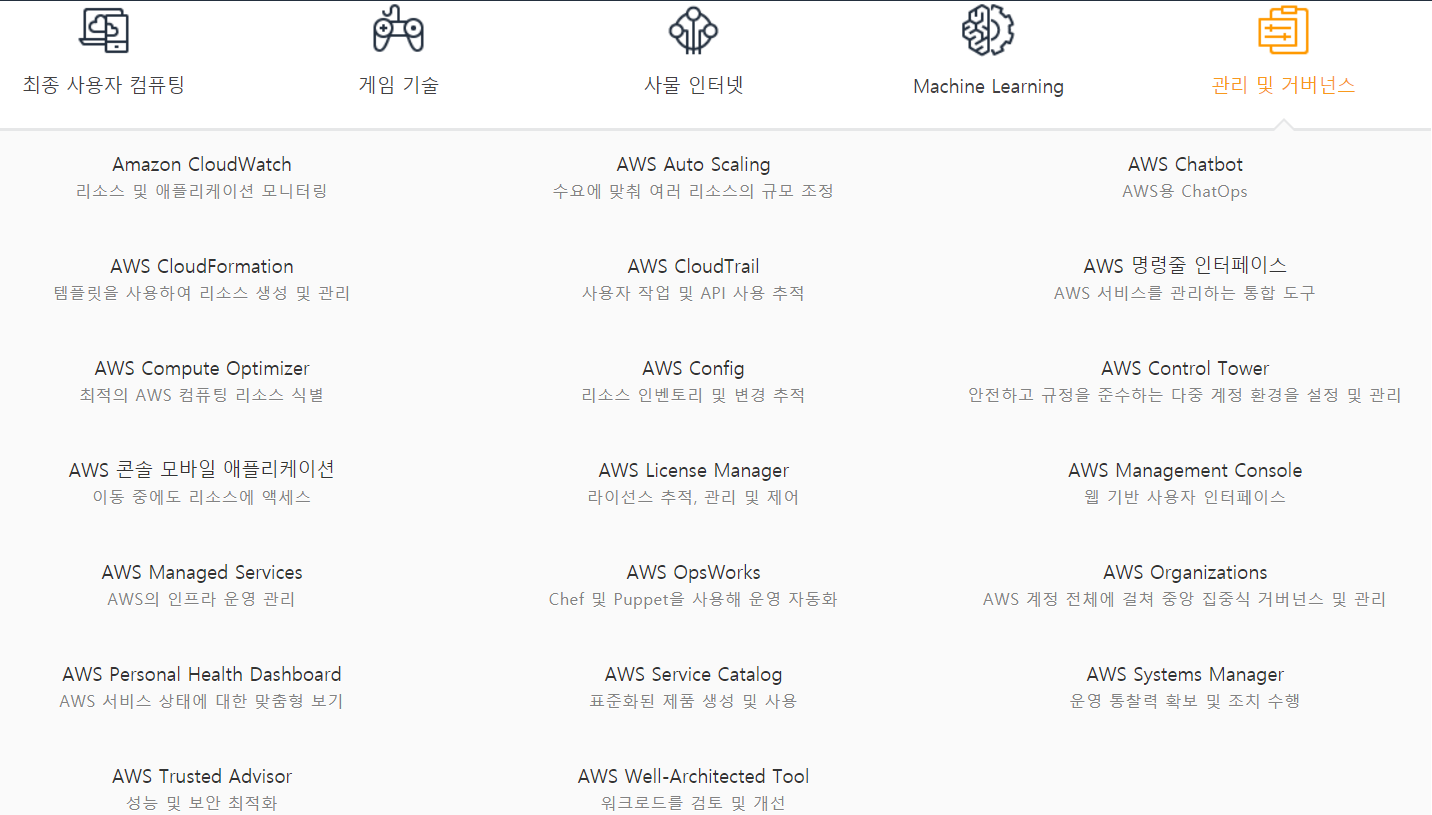AWS 계정의 거버넌스, 규정 준수, 운영 감사, 위험 감사를 지원하는 서비스