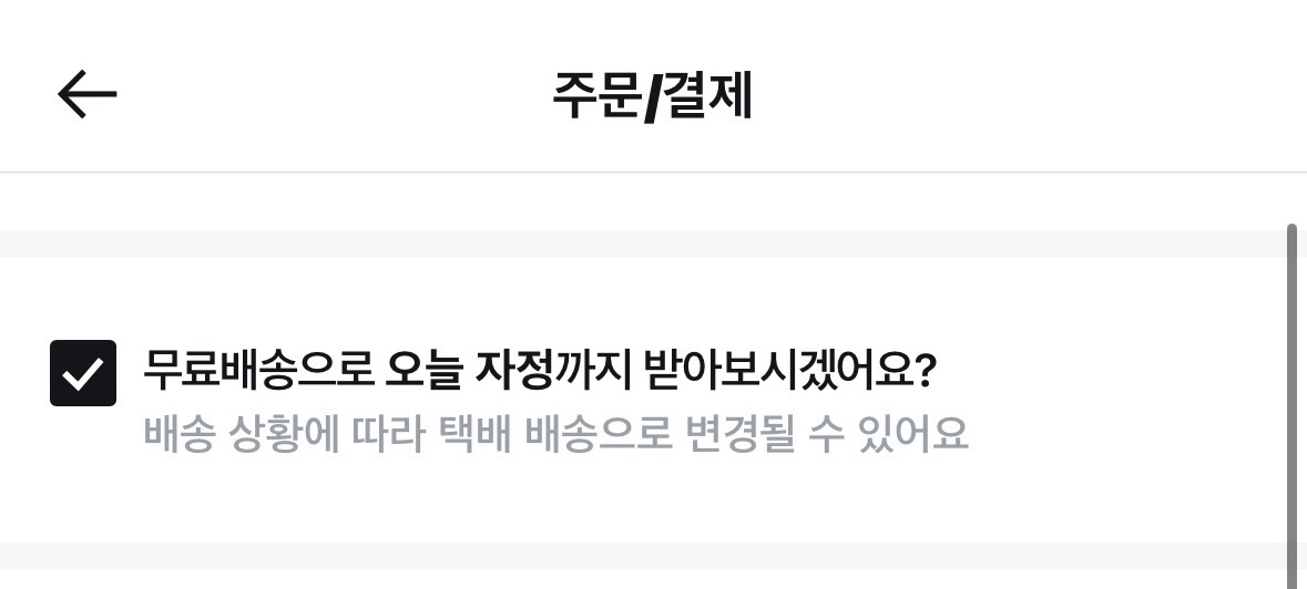 오늘드림이라는 명확한 단어가 안내문구에 있는게 아님에도 불구하고, 이 옵션을 선택할 경우 오늘드림 배송에 동의한 격이 된다.