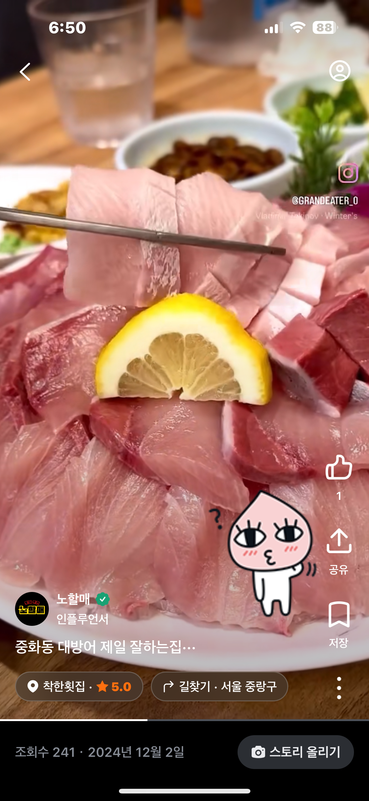 오른쪽에 컨트롤할수 있는 좋아요, 저장, 공유가 있고