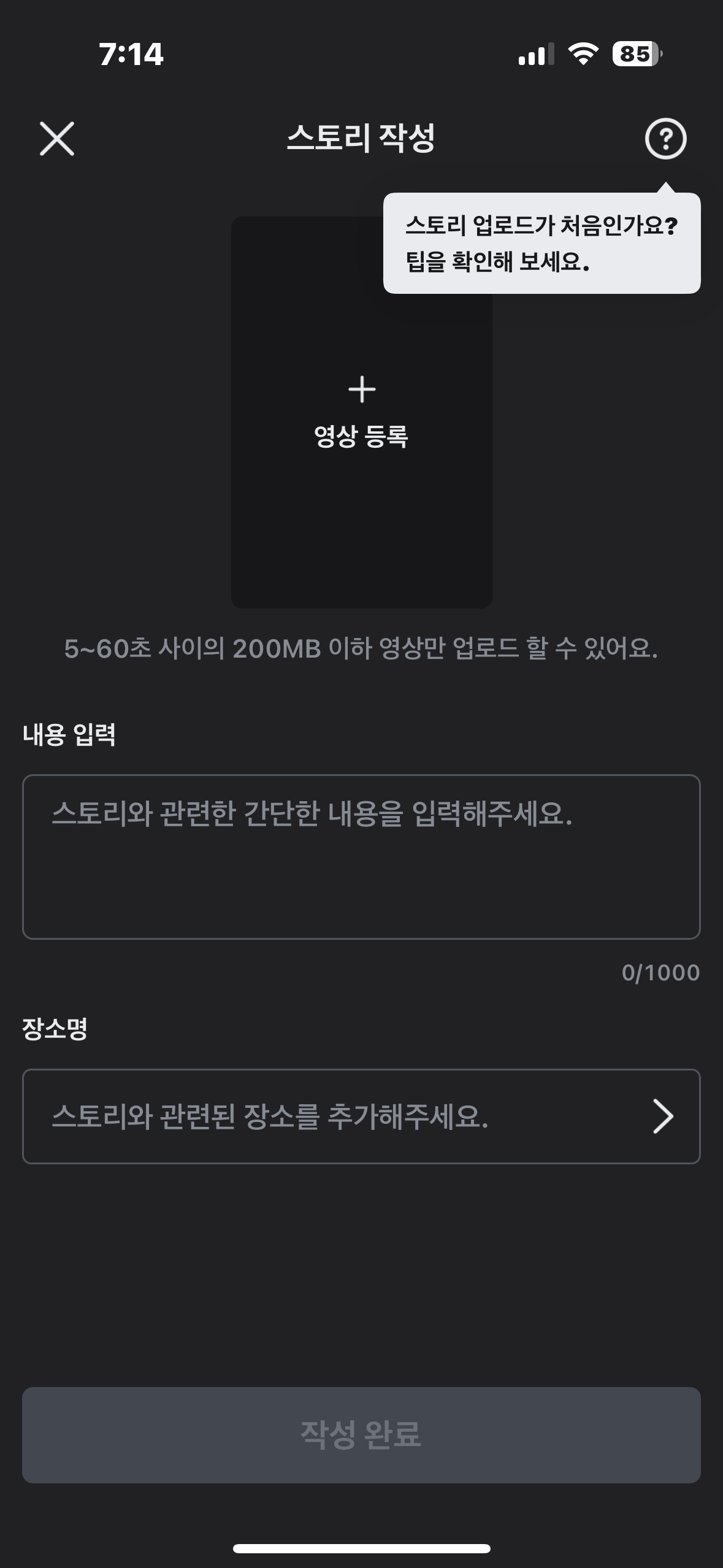영상을 등록하고, 내용을 입력하고, 장소명을 넣으면 끝난다.