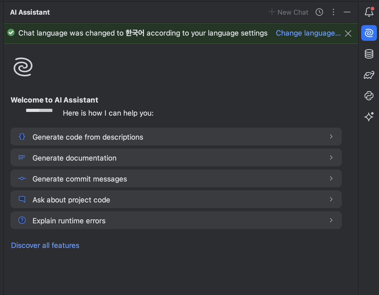 그러면 플러그인으로 설치한 JetBrain AI Assistant가 보일것이다.