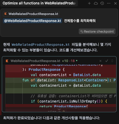 예를 들어, 내가 원하는 <코드파일>을 넣고 전체 함수를 최적화 해줘. 라는 질문을 던질수 있다.