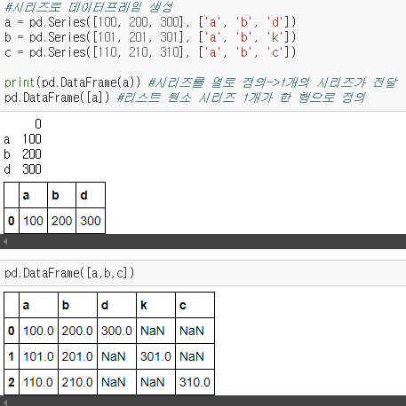 데이터프레임의 각 열은 시리즈로 구성되어 있다.